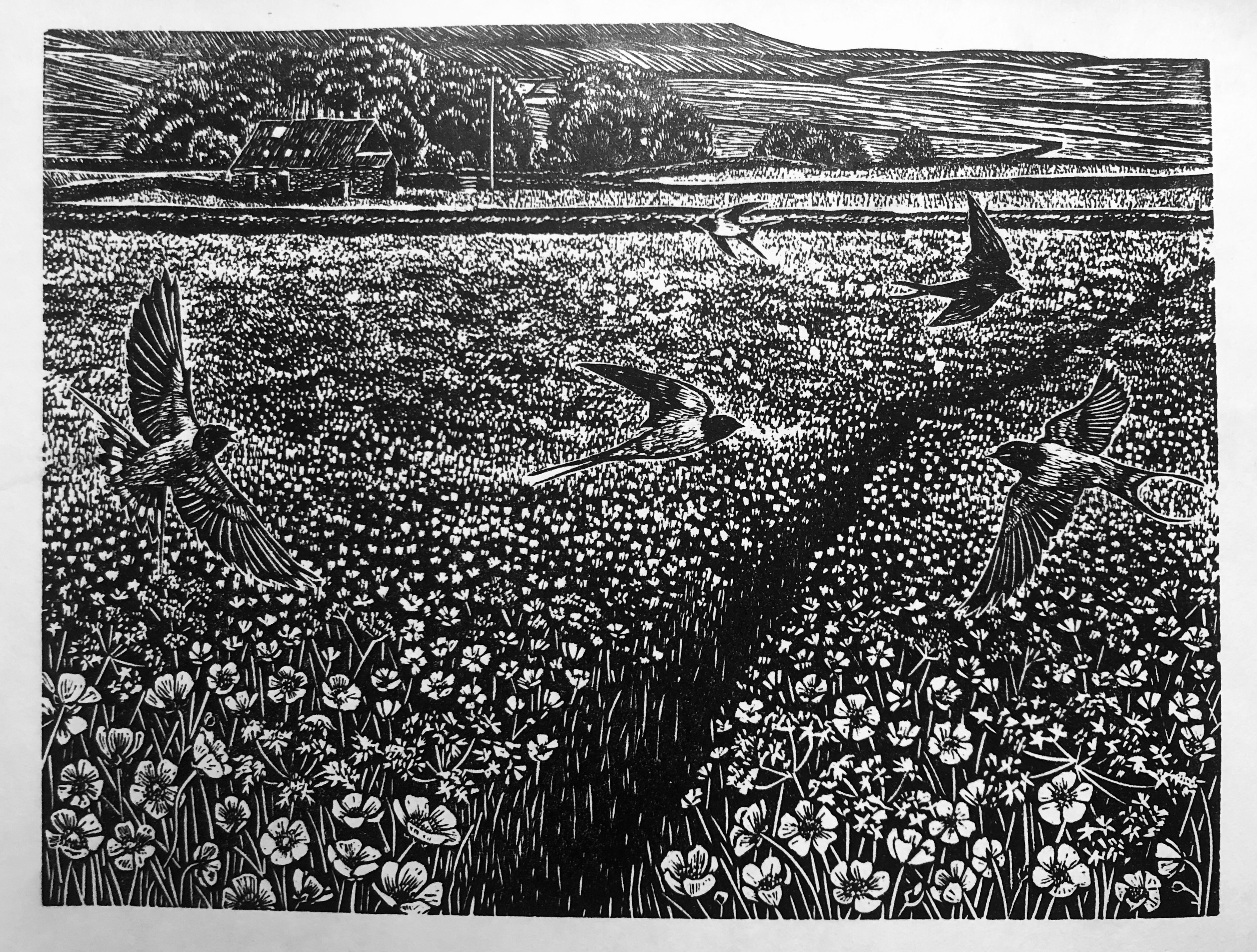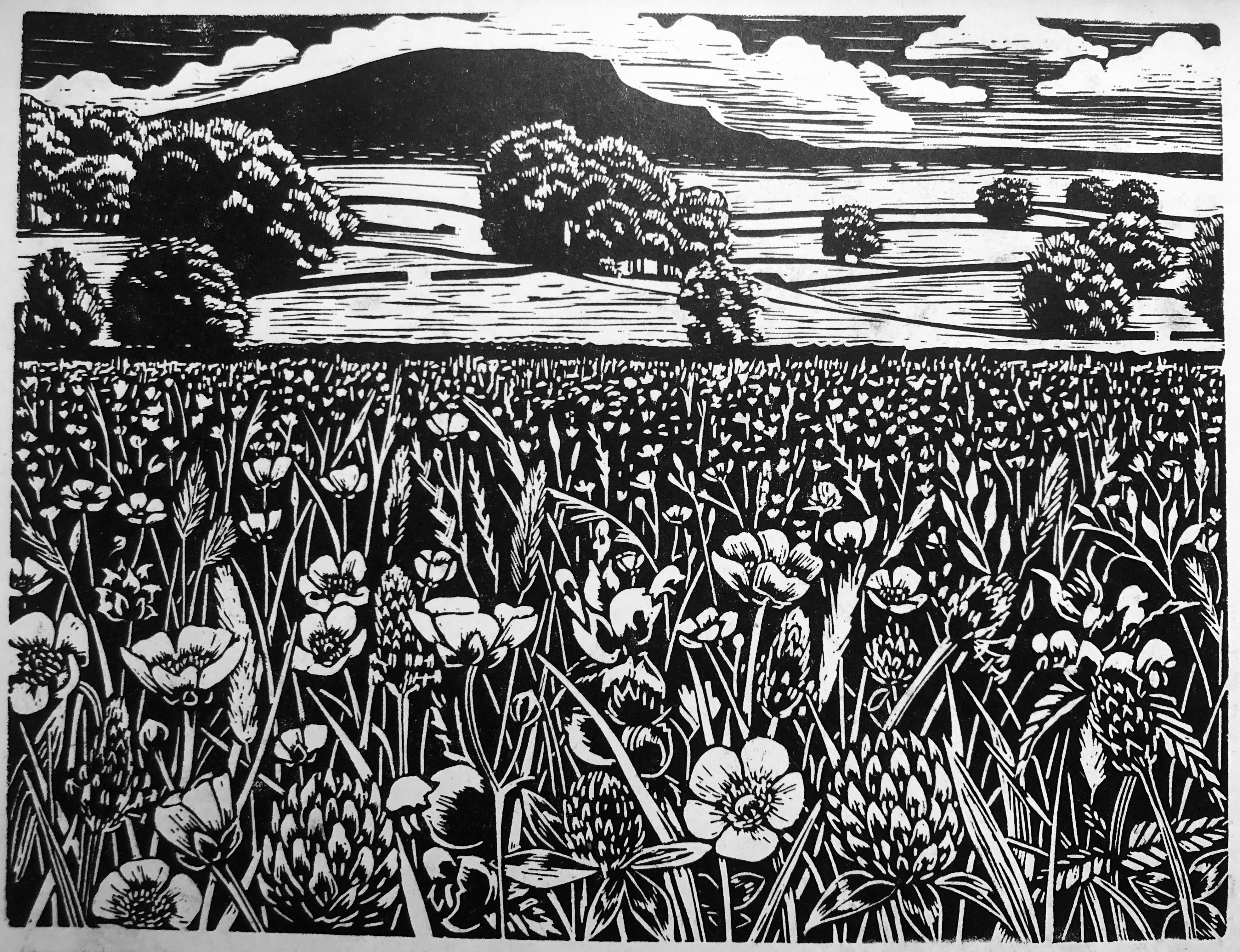 My meadow collection has been a long time in the making. I began the work last year when the hay meadows were in full flower. I spent time sketching the different grasses and flowers in preparation for making the plates. It became obvious that the piece would be something of a labour of love and I was tied up with other work last year so I put it to one side until January when I knew I’d have six months to work almost exclusively on the final work for the exhibition. The finished piece is created within an old print type drawer of the kind that you often see in junk and second hand shops. I’ve used smaller ones before in my Collections project and I like the way they give the pieces a museum quality with each print becoming an artefact within each space. I also thought that each individual print shown in a section of the tray would give the whole piece a feeling of a cross section of a meadow and there was a connection with Marie Hartley and her wood engraving blocks and the original books being created using letterpress.