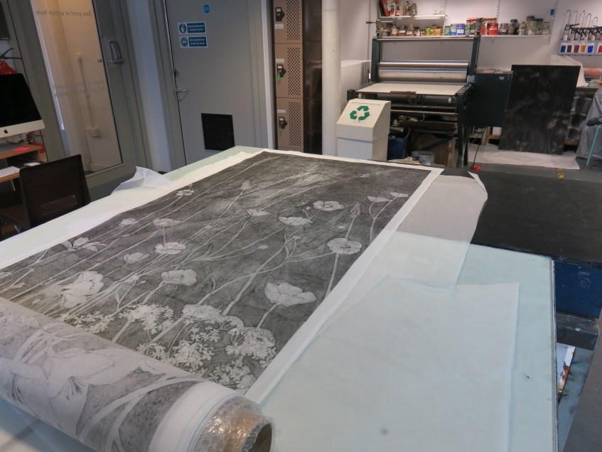 IMG_1670 Published June 7, 2017 at 5184 × 3888 in Large-scale Collagraphs The final print! All ready to roll up with tissue paper for transportation home.