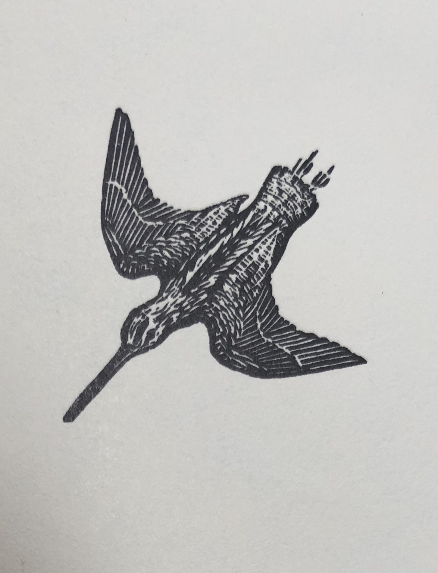IMG_1335 Published June 29, 2020 at 1454 × 1900 in Marie’s List Snipe, wood engraving by Marie Hartley